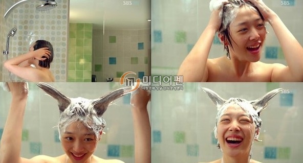 머리를 감던 도중 뾰족한 뿔 모양을 만들며 장난치는 설리의 모습이 보는 이들의 시선을 사로 잡았다. 특히 귀여움과 섹시함을 넘나드는 모습이 남심을 사로잡기에 충분했다.