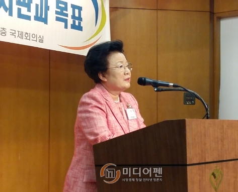 ▲ 한국선진화포럼이 30일 서울 명동 은행회관 국제회의실에서 개최한 ‘다 함께 가는 착한 선진화: 새로운 가치관과 목표’ 10주년 기념세미나에서 이배용 한국학중앙연구원 원장은 축사를 통해 “(국정)교과서도 국가가 책임지고 석학들의 노력을 통해 과거의 아름다운 경험을 후세들에게 전하기 위함”이라면서 국정교과서의 불가피성과 정당성을 밝혔다./사진=미디어펜 |