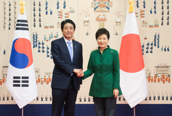 [미디어펜=김소정 기자]박근혜 대통령과 아베 신조 일본 총리가 2일 첫 정상회담에서 일본군 위안부 피해자 문제를 가능한 빠른 시일 내 타결하기 위한 협의를 가속화하기로 합의하면서 일보 진전됐다는 평가가 나온다.
