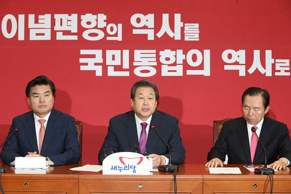 김 대표는 이어 국정화 저지 불복종운동을 전개하고 있는 문재인 대표를 겨냥해 “국사편찬위가 의지를 밝힌 만큼 혹시라도 잘못된 부분이 있으면 그때 비판해도 늦지 않다. 나오지도 않은 교과서를 비판할 게 아니라 건강한 역사가 올바르게 집필될 수 있도록 국민이 힘을 모아줘야 할 때임을 야당도 명심해달라”고 강조했다.
