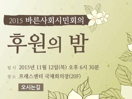 ▲ 바른사회시민회의가 오는 12일 오후 6시 프레스센터 국제회의장에서 ‘2015 후원의 밤’을 개최한다. |