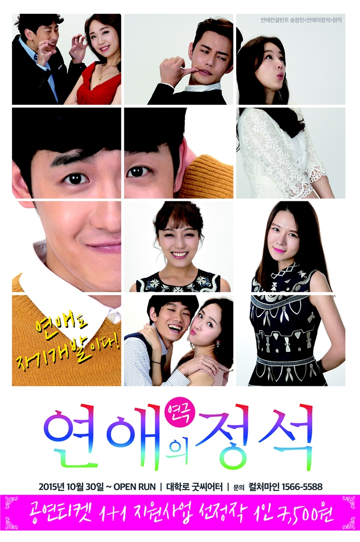 연극 ‘연애의 정석’은 가난한 배우지망생인 연하남과 한순간 바닥으로 떨어진 인기 여배우인 연상녀의 연애 과정을 담은 순수한 사랑 이야기를 그리고 있다. 특히 모태 솔로 찌질한 남자 주인공과 술만 취하면 벤치에서 자는 건어물녀 여자 주인공의 연애 스토리가 관람객들의 공감과 웃음을 이끌어 낸다.