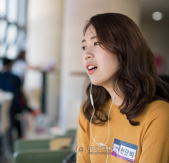 게재된 사진 속 천단비는 연습을 하는 듯 이어폰을 귀에 꽂고 있는 모습이다.