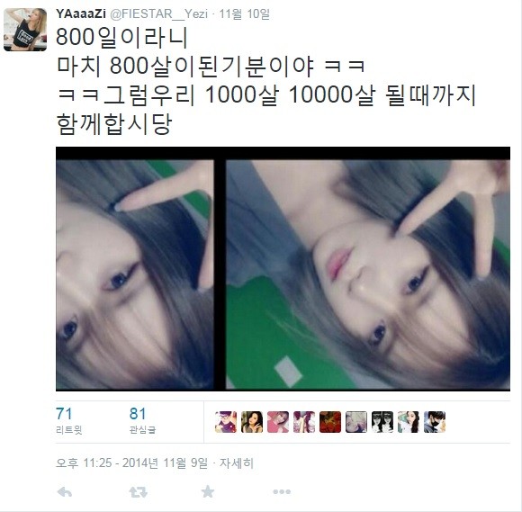글의 내용을 보면 2012년 데뷔한 피에스타가 활동한지 800일을 맞이했음을 짐작할 수 있다.