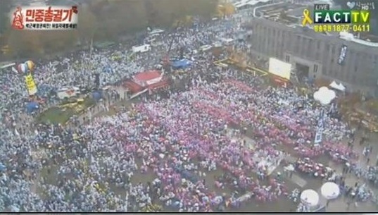 [미디어펜=정재영 기자]팩트TV에서 생중계하는 '민중총궐기 집회'가 광화문 광장 일대에서 벌어지고 있다.