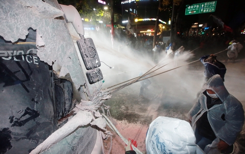 ▲ 박근혜 대통령 퇴진, 반정부의 기치를 높이 든 시위대는 광화문 광장 앞에서 경찰버스와 기동대를 향해 온갖 폭력을 행사했다./사진=연합뉴스 |