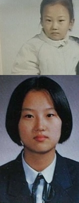첫번째 사진 속 장윤정은 새침한 표정을 지으며 카메라를 바라보고 있다. 아래에 있는 학창시절의 장윤정은 단정한 단발머리를 하고 똘망똘망한 눈빛을 짓고있다.