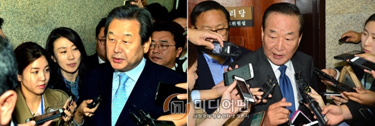 | ▲ 내년 4월 총선 공천특별기구 구성을 놓고 새누리당 김무성 대표와 서청원 최고위원이 19일 비공개 회동을 가졌지만 공천 룰을 정하는 기구 선정을 놓고 결론을 내지 못한 것으로 20일 알려졌다./사진=미디어펜 홍정수 기자 |