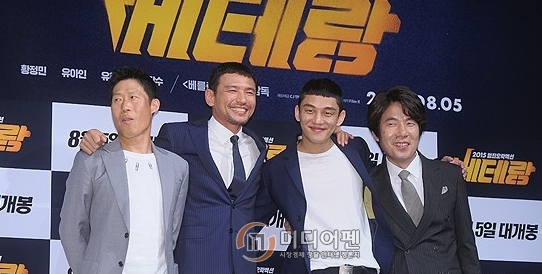 이날 유해진은 황정민, 유아인, 오달수와 함께 지난 7월 1일 오전 서울 강남구 신사동 CGV압구정에서 열린 영화 '베테랑(감독 류승완)' 제작보고회에 참석해 포즈를 취하고 있다.