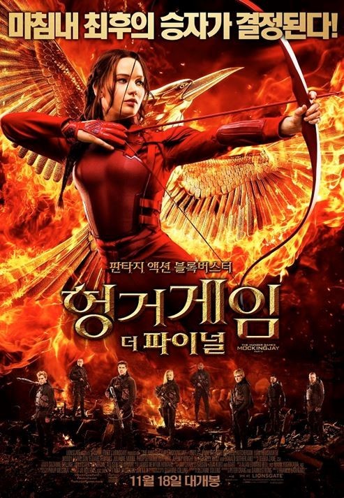 '헝거게임:더 파이널'은 두 번의 헝거게임에서 살아남은 캣니스에버딘(제니퍼로렌스 분)이 최정예요원을 이끌고 스노우 대통령과 마지막 대결을 펼친다는 내용이 주된 스토리다.