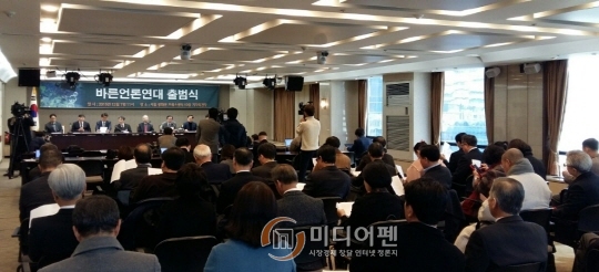 ▲ 바른언론 관계자는 1일 출범 기자회견에서 “건전한 언론문화 정립을 위해 이념과 정파를 떠나서 더 많은 언론인들 및 학자들의 동참과 협조를 촉구할 것”이라고 강조했다. 사진은 바른언론 출범 기자회견 전경./사진=미디어펜 |
