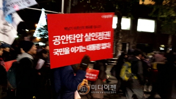 ▲ 주말인 5일 서울 도심에서 지난 11월 14일 열린 민중총궐기 집회의 후속 대규모 집회가 열린 가운데, 시위대의 집단적인 불법폭력 행위가 발생하지 않았지만, 시위행진 과정 곳곳에서 욕설과 몸싸움이 일어났다./사진=미디어펜 |