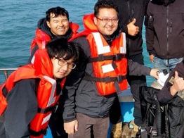 ▲ 세월호 참사 특별조사위원회 조사관들이 지난 22일 세월호 침몰 해역에서 웃으며 기념사진을 찍은 것이 뒤늦게 밝혀져 논란이 일고 있다. 특조위 조사관 3명은 11월 22일 세월호 선체에 대한 수중 촬영을 마친 뒤 촬영에 참여한 민간 잠수부들과 침몰 해역 어선 위에서 환히 웃으며 기념사진을 찍었다./사진=네이버블로그(Undersea Ex) 게시물 캡처 |