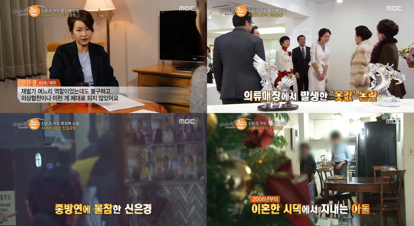 8일 방송된 MBC '리얼스토리눈'에서는 거짓 모성애 논란부터 전 소속사와의 법적 다툼까지, 논란의 중심에 서 있는 배우 신은경을 만났다. 이날 방송에서 신은경은 1억 대 옷값 논란의 실체를 밝혔다.