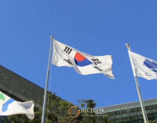 ▲ 서울시가 광화문 광장에 국기 게양대의 영구설치를 거부하는 결정을 내려, 이를 결정한 서울시 산하 시민위원회의와 박원순 서울시장에 대한 세간의 비판이 거세다. 박 시장과 그가 임명한 시민위원회는 태극기 영구설치를 거부한 이유를 “권위적이다” “전제주의적 냄새가 난다”고 밝혔다. 사진은 서울시청 앞에 걸려 있는 태극기./사진=미디어펜 |