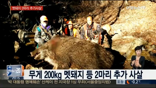 지난 17일 오후 2시20분쯤 사고 발생 지점에서 700m가량 떨어진 곳에서 길이 1m50㎝, 몸무게 200㎏에 달하는 수컷 멧돼지 1마리가 사살되기도 했다.