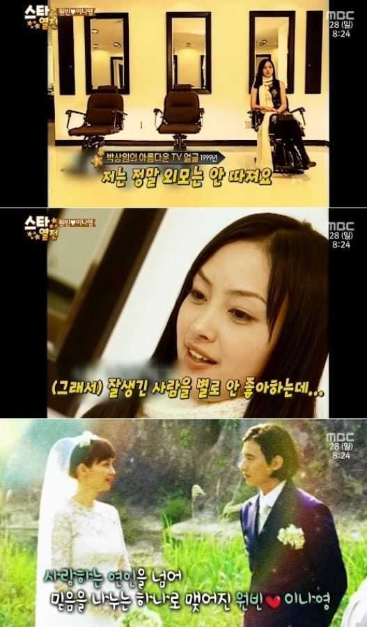 과거 이나영은 1999년 프로그램 '박상원의 아름다운 tv 얼굴'에 출연, 풋풋한 모습을 자랑하며 눈길을 모았다. 이날 이나영은 방송에서 "저는 정말 외모는 안 따져요"라며 "잘생긴 사람을 별로 안 좋아하는데.."라고 말했다.