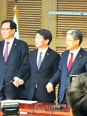 ▲ 안철수 의원의 신당 창당 기자회견이 있은 21일 새정치민주연합을 동반 탈당한 문병호 의원(좌)은 “광주가 태풍의 진원지가 될 가능성이 높다”며 “대체로 모든 의원이 고민하고 있지만 그 중아 한두분 정도는 이번주 내로 탈당하지 않을까 싶다”고 했다. 전날 3선의 김동철 의원이 광주지역 의원 가운데 처음으로 탈당한 이후 나온 주장이어서 주목된다. 사진은 안철수 신당 창당 기자회견 모습. /사진=미디어펜