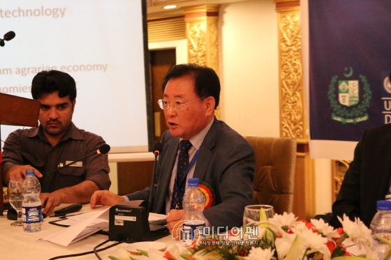 ▲ 지난 17일 좌승희 영남대 박정희새마을대학원 석좌교수(미디어펜 회장)은 파키스탄경제학회 특별 초청 행사로 파키스탄 이슬라마바드 메리어트 호텔에서 해외 저명학자초청 특별강연을 했다./사진=미디어펜 |