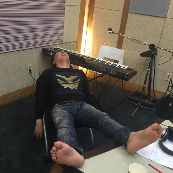 박명수는 공개된 사진 속에서 발을 책상에 올려놓고 하늘을 바라보며 탄식하고 있다. 널부러져 있는 작업실 풍경과 박명수의 모습이 돋보인다.