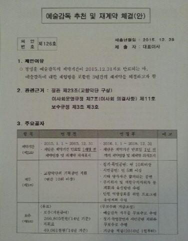 ▲ 언론에 보도된 정명훈 서울시향 감독의 재계약 내용과 관련하여 국가교육국민감시단 김정욱 사무총장이 입수한 자료에 따르면, 모두 사실로 확인되었다./사진=국가교육국민감시단 블로그