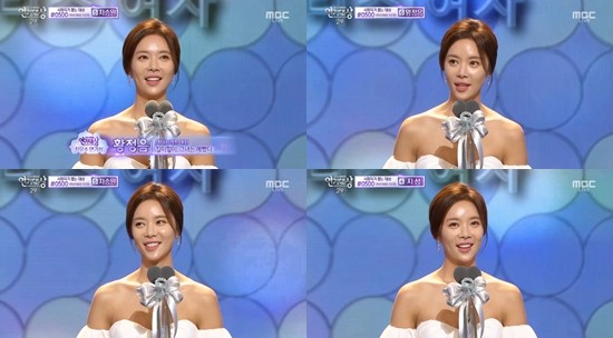 배우 황정음이 MBC 연기대상 미니시리즈 여자 최우수연기상 부문을 수상했다.