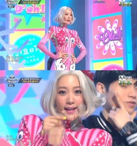 클라라는 과거 생방송된 엠넷 '엠카운트다운'에서 신곡 '귀요미송2' 무대를 선보였다.