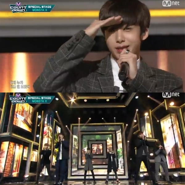 이날 몬스타엑스는 '히어로'를 통해 파워풀한 퍼포먼스를 선보였다. 이어진 '에이맨'에서는 섹시하고 달콤한 그들의 매력을 발산했다.