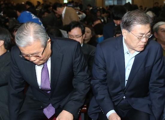 ▲ 더불어민주당 문재인 대표(오른쪽)가 17일 오전 국회 의원회관에서 열린 오픈 강의 형식의 더불어 콘퍼런스 '사람이 힘'에서 김종인 선거대책위원장과 함께 자리하고 있다./사진=연합뉴스