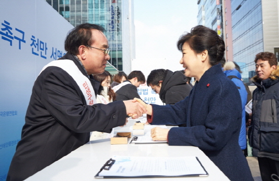 ▲ ‘민생구하기 입법촉구 1000만명 서명운동’이 한파 속에서 뜨겁게 이뤄지고 있다. 시민단체는 물론 일반 시민, 재계가 대거 나서 릴레이서명을 하고 있다. 지난 18일 박근혜 대통령이 18일 경기 성남 판교역 광장에서 열린 민생구하기 입법 촉구 천만 서명운동 행사장을 찾아 직접 서명한 이후로 국회를 압박하려는 시민들의 발걸음이 이어지고 있는 형국이다./사진=청와대 홈페이지 |