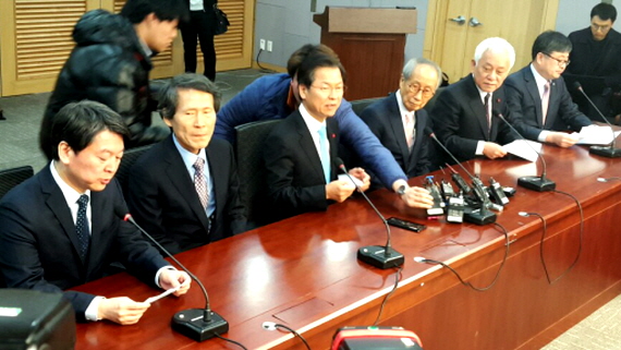 김한길 의원은 이날 오전 10시30분 국회 의원회관에서 기자회견을 열고 “다가오는 총선에서 박근혜-새누리당 정권의 압승을 저지하기 위해 양측을 통합하기로 합의했다”며 이같이 밝혔다.