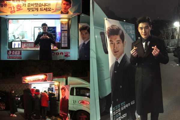 [미디어펜=정재영 기자] 곽희성이 혹한의 추위에 고생하는 스태프들을 위해 훈훈한 마음과 간식차를 선물했다.
