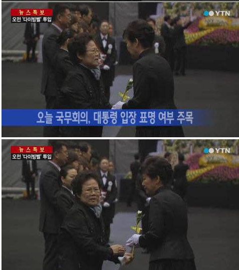 29일 오전 박근혜 대통령이 '세월호 사고 희생자 정부 합동분향소'를 방문했을 때 꽃을 건넨 할머니의 정체가 네티즌들 사이에서 화제다.