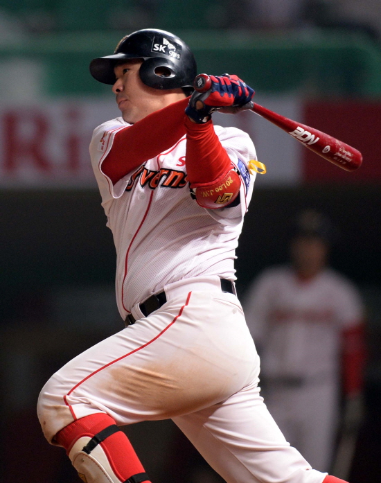 SK 와이번스의 이재원은 13일 인천 문학구장에서 열린 ‘2014 한국야쿠르트 세븐 프로야구’ 두산 베어스와의 경기에 3번 지명타자로 선발 출전, 7회 네 번째 타석에서 우중월 솔로홈런을 때렸다.