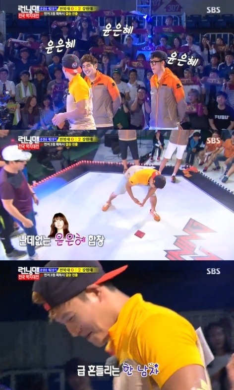 런닝맨의 김종국이 윤은혜 공격에 처참히 무너지고 말았다.