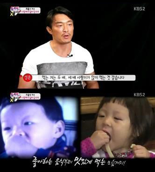 추성훈은 25일 방송된 KBS2 예능프로그램 ‘해피선데이- 슈퍼맨이돌아왔다(슈퍼맨이돌아왔다)’에서 딸 추사랑을 연상케 하는 자신의 어린시절 모습을 공개했다.