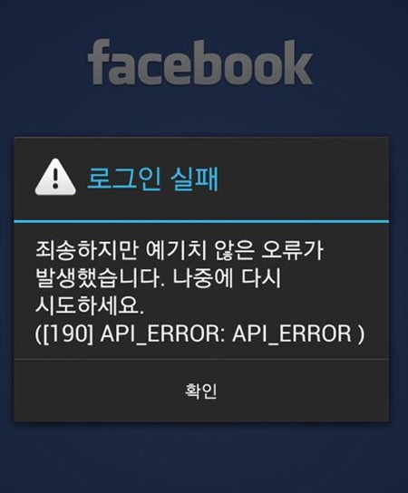 | ▲ 페이스북 오류 팝업창 캡처 |
