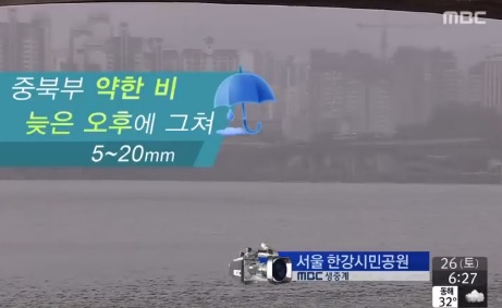 주말인 26일, 오늘의 날씨는 전국이 흐리고 곳곳에서 비가 내릴 전망이다. 특히 수도권과 충남 서해안으로는 강풍특보가, 남부 내륙으로는 폭염특보가 발효 중이다.