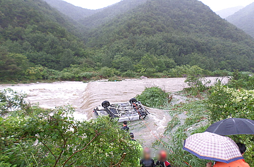 3일 오전 2시50분께 경북 청도군 운문면의 한 오토캠핑장 인근 계곡에서 한모(46·여)씨와 딸 윤모(21)씨, 한씨의 올케 한모(36)씨와 올케 한씨의 5세, 2세 두 아들 등 7명이 탄 아반떼 차량이 다리를 건너다 갑자기 불어난 물에 휩쓸렸다.