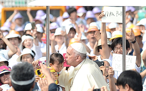 프란치스코 교황은 퍼레이드 도중 잠시 차를 멈춘 뒤 경호원의 손에 안겨 자신에게 다가온 아이들의 머리에 살며시 입을 맞추기도 했다. 갑작스런 상황에 놀라 우는 아이를 보고는 환하게 웃어보이기도 했다.
