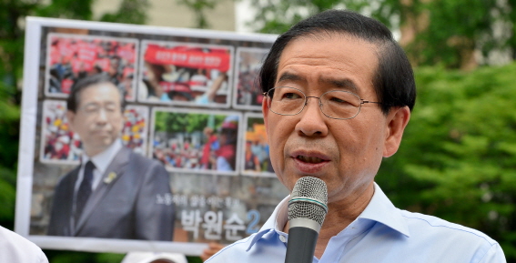 ▲ 6.4 지방선거 당시 시장 후보로 막판 유세를 벌이던 박원순 서울시장. 서울시 직속의 서울친환경유통센터로 인하여 불거진 관(官)피아 2300억 원 게이트가 현재 검찰 수사 중에 있다. |