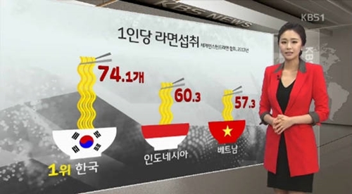 최근 세계 인스턴트 라면협회가 조사한 결과에 따르면 우리나라 국민은 지난해 1인당 74.1개의 라면을 먹어 세계 1위인 것으로 나타났다.