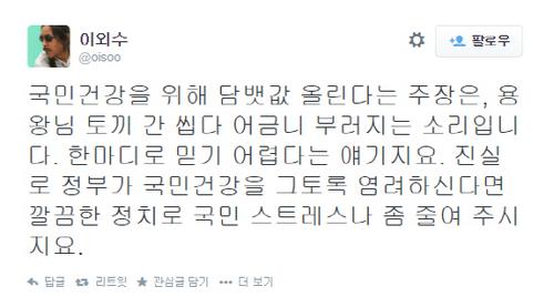 담뱃값 인상 논란에 소설가 이외수가 맹비난을 퍼부었다.