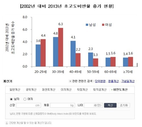 초고도비만율이 증가하고 있는 가운데 비만도계산기가 네티즌들의 관심을 모으고 있다.
