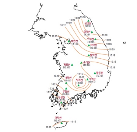 올해 첫 단풍 예상 날짜가 발표 돼 네티즌들의 관심을 모으고 있다.