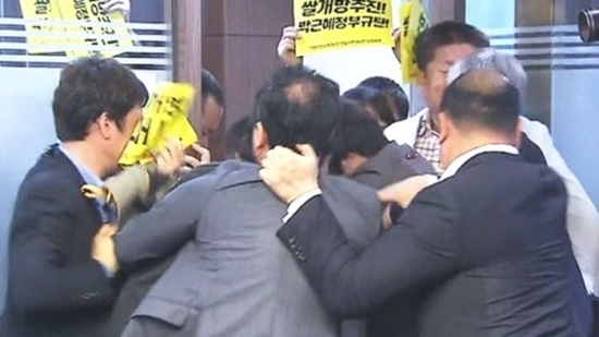 이날 당정 회의 도중 쌀 시장 전면 개방에 반대하는 농민단체 회원 10여 명이 난입해 계란과 고춧가루를 던지며 거칠게 항의하면서 회의가 잠시 중단되기도 했다.