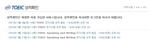 | ▲ 사진=토익 점수확인 홈페이지 캡처 |