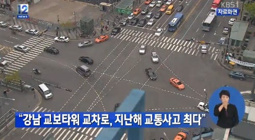 지난 23일 도로교통공단이 국회 안전행정위원회에 제출한 자료에 따르면 지난해 서울 강남 논현동 ‘교보타워교차로’에서 발생한 교통사고 건수는 전국 1위의 수치다.