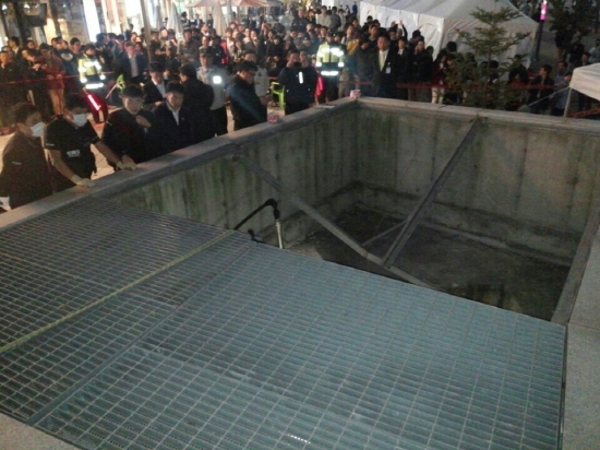 사고를 당한 사상자 27명의 몸무게는 1인당 평균 60㎏으로 잡으면 대략 1.7t에 이른다. 그러나 이리저리 몸을 움직이고 다리에 힘을 주면 철제 덮개에 가해지는 하중은 더욱 커진다. 하지만 철제 덮개가 견뎌야할 하중은 법적인 규정이 없는 것으로 알려졌다.