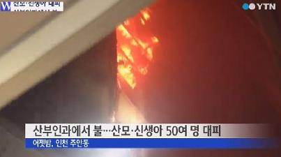 24일 오후 9시44분께 인천 남구 주안동의 7층짜리 산부인과 건물에서 화재가 발생, 병원에 입원해 있던 산모·신생아 등 56명이 대피했다.